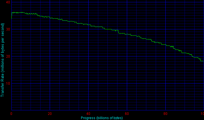 По скорости работы интерфейса у дисков Fujitsu все в пределах нормы, без рекордов, но и без провалов. Есть небольшое улучшение по сравнению с прошлой серией MHT.