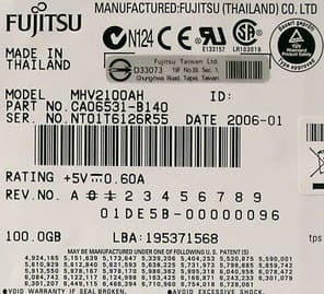 - Fujitsu MHV2100AH — 100 Гбайт с интерфейсом UltraATA/100