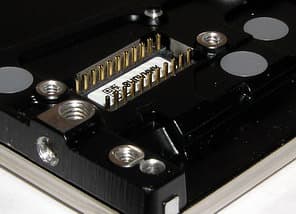 Соединение платы с гермоблоком осуществляется не прижимными (игольчатыми) контактными группами, как в настольных моделях винчестеров, а при помощи pin-панели позолоченных контактов, утопленной в корпус.