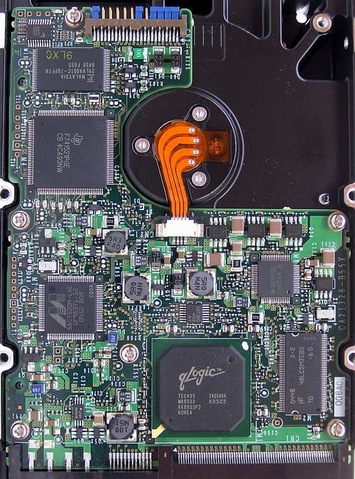 Плату контроллера диска особо компактной не назовешь — здесь используется контроллер от qLogic, сигнальный процессор от Marvell, 166-мегагерцовая память для буфера и ряд других микросхем. По сравнению с тем же Hitachi Ultrastar 15K147 она смотрится несколько старомодно и громоздко.