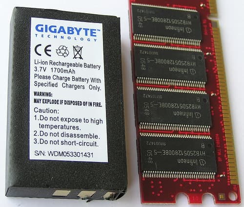 Аккумулятор для резервного хранения данных в RAM-диске закреплен на плате в соответствующем пенале, так что найти ему произвольную замену вряд ли сходу получится. На побывавшем у нас экземпляре была установлена ионно-литиевая батарея с номинальным напряжением 3,7 вольт и емкостью 1700 мА·ч, что чуть больше, чем по спецификациям.