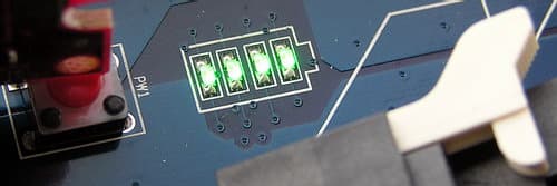 Этот индикатор может работать и в автономном состоянии (то есть, когда i-RAM находится вне компьютера): он показывает уровень текущей зарядки батареи (количеством горящих светодиодов). То есть по нему можно судить, насколько разрядилась батарея i-RAM и необходимо ли ее срочно зарядить, чтобы не потерять данные на RAM-диске.