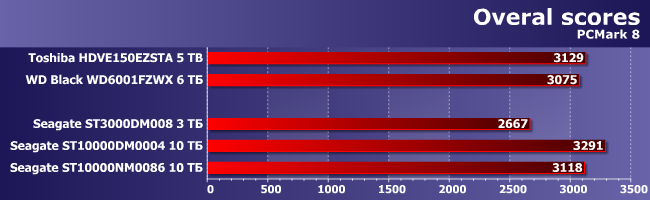 Понятно, что на роль «основного и единственного» накопителя в системе может претендовать разве что младшая BarraCuda (да и то ограничено — как уже было сказано выше, экономные пользователи обходятся «терабайтниками» и не обязательно новыми, а прочие добавляют к системе бюджетный или не очень SSD), но никак не винчестеры на 5+ ТБ, что делает результаты высокоуровневых тестов синтетичными. С другой стороны, низкоуровневые — по-определению такие всегда, так что рассмотреть еще один сценарий (некогда — очень типичный) небесполезно. Но и не слишком интересно. Внимание вызывает разве что отставание «тритера» от всех участников тестирования (даже накопителей WD и Toshiba на аналогичных пластинах), а также небольшой выигрыш «десятки» не только у упомянутых, но и у ближайшего родственника. Как видим, идентичность ТТХ не всегда приводит к идентичности производительности — современные винчестеры являются уже настолько сложными устройствами, что та или иная оптимизация прошивок может иметь значение.