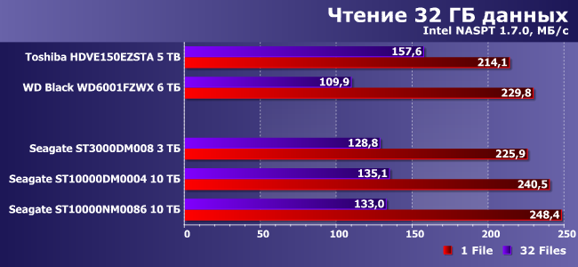 И даже там, где особой сложности не наблюдается, возможно различное поведение. Впрочем, «чистого последовательного» чтения или записи это, естественно, не касается. А вот если стоит задача работать в несколько потоков или, например, проводить запись одновременно с чтением, да еще и не с последовательным, а с (псевдо)случайным доступом — уже возможны нюансы. Причем такие, что выбрать однозначного лидера не выходит. Разве что «обычная» BarraCuda — почти однозначный аутсайдер, но по предыдущим тестам мы примерно такого и ожидали.