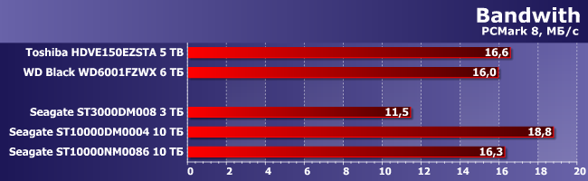 А подробные результаты трасс PCMark наглядно демонстрируют, что в ряде наиболее важных с точки зрения интерактивной работы за компьютером сценариев именно сама механика уже оказывается узким местом, что сильно бьет по перспективам винчестеров в качестве системных накопителей. Впрочем, в этом нет ничего нового — все-таки 2017 год на дворе. Зато при обработке данных даже их потенциальные возможности задействуются ПО вовсе не в полную силу — так что спешить переводить вообще всю систему хранения данных на твердотельные устройства не обязательно.