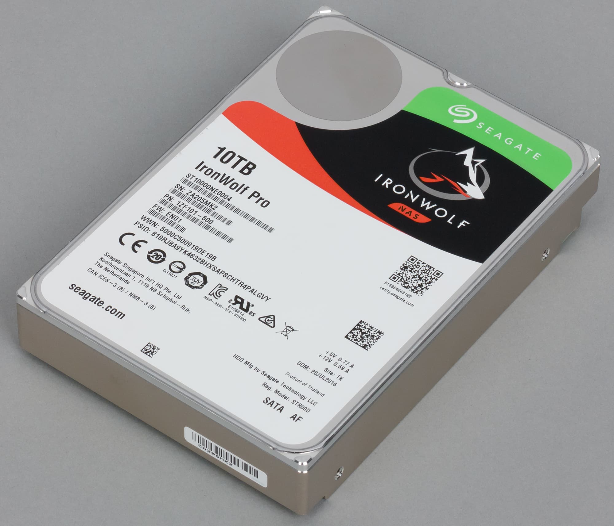 О новой системе наименований в ассортименте винчестеров Seagate мы уже писали в прошлом году. В том же материале мы упомянули и о том, что «верхушки» трех линеек, имеющие емкость 10 ТБ, собраны в отдельной серии «стражи данных». Ее «настольного» представителя мы недавно рассматривали, а сегодня решили подробно познакомиться с еще двумя — для NAS и... нет, не для систем видеонаблюдения, а тоже для NAS: кроме линейки IronWolf, представленной изначально, в ассортименте компании появились и диски семейства IronWolf Pro (ранее — Enterprise NAS).