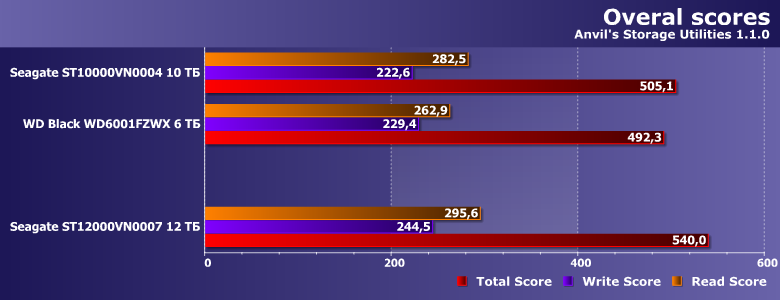 Баллы этой программы — практически оценка скорости выполнения низкоуровневых операций в чистом виде. Некоторые из этих операций удобны для винчестеров, но основная масса — нет, так что в итоге получается лишь порядка пяти сотен баллов на фоне выдаваемых даже бюджетными SSD двух тысяч с лишним. Опять же, на открытие это не тянет: так было, есть и будет всегда.