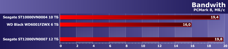В этом году Seagate начала поставки винчестеров на 12 ТБ — сначала на корпоративный рынок, а теперь уже и на массовый. Что изменилось в новых топах семейств BarraCuda Pro, IronWolf и IronWolf Pro? Радикально — ничего; просто доработка технологии позволила компании установить в один корпус уже не семь, а восемь пластин. Естественно, не обошлось и без «побочных» улучшений — в частности, по заявлениям производителя, уменьшилось энергопотребление. Но в целом это эволюционное, а не революционное усовершенствование: речь по-прежнему идет о накопителях со скоростью вращения шпинделя 7200 об/мин, 256 МБ кэш-памяти, интерфейсе SATA600 и т. п. Несложно заметить, что и плотность записи осталась примерно той же — просто за счет дополнительной пластины общая емкость выросла на 20%. «В терабайтах», однако, увеличение звучит внушительнее — все-таки огромное количество компьютеров и сейчас продается с винчестером на 1 или 2 ТБ, а в ноутбуках встречаются и меньшие значения. Не говоря уже о твердотельных накопителях, емкость ходовых модификаций которых в основном все еще измеряется сотнями гигабайт. Здесь же прирост с 10 до 12 ТБ. Или, например, увеличение емкости массива RAID5 в четырехдисковом NAS с 30 до 36 ТБ. Звучит внушительно :) И до активных продаж винчестеров с HAMR-головками, которые сразу же начнут использовать пластины по 2 ТБ (по нынешним прогнозам), так что восьмидисковый пакет позволит вместить в корпус уже 16 ТБ, это значение вряд ли увеличится. При этом цены HAMR-дисков первое время будут заметно более высокими, чем у «классических» винчестеров, так что за пределы ЦОД они вряд ли быстро выйдут. В общем, стоит готовиться к тому, что в массовом сегменте 12 ТБ — это всерьез и довольно надолго. Впрочем, об истинной массовости здесь, конечно, говорить трудно: цены таких накопителей низкими тоже не назовешь. В частности, рекомендованная цена 12-терабайтных BarraCuda Pro и IronWolf Pro составляет внушительные $540. Цена обычного IronWolf несколько более гуманная — «всего» $470, но не стоит забывать о том, что диски этого семейства имеют трехлетний, а не пятилетний срок гарантии. В московской рознице новый IronWolf стоит порядка 30 тысяч рублей, тогда как «старый маленький» на 10 ТБ обойдется владельцу примерно в 24 тысячи рублей (а можно найти и более дешевые предложения). В общем, пока цена гигабайта (или уже терабайта, скорее) сопоставимая — да и сложно было бы ожидать обратного :) Но если стоит задача получить максимум от каждого дискового отсека — выбирать не приходится: эти 20% придутся очень к месту. А как они в первом приближении работают, мы сегодня оценим.