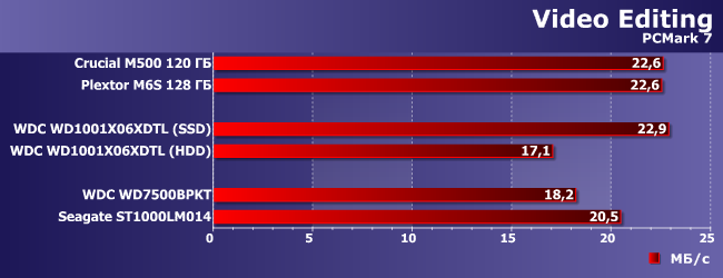 Работа с видео — тот случай, когда обычные винчестеры не слишком отстают от гибридных, да и от твердотельных накопителей тоже. Это очень хорошо для потенциального владельца Black²: значит, делать данную работу можно, и не выходя за пределы емкой винчестерной части.