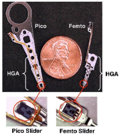 Технология фемто-слайдеров позволяет не только повысить в перспективе плотность записи и скорость дисков (ведь их линейные размеры на 30% меньше, чем у предшественников, а вес — почти втрое меньше!), но и снизить энергопотребление мобильных жестких дисков, повысить их ударостойкость (помимо массы, вдвое снижаются и аэродинамические силы). В результате, диск 7K60 оказался практически таким же экономичным, как 5K80, и на четверть более ударостойким при хранении. Более того, меньшие размеры фемто-слайдеров позволяют размещать большее их количество на пластине кремния при производстве, что снижает их себестоимость.