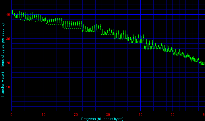Суть технологии адаптивного форматирования заключается в том, что каждый экземпляр накопителя индивидуально настраивается на заводе таким образом, чтобы обеспечить лучшую производительность и надежность. Для этого каждая пара «головка-поверхность пластины» собранного диска тестируется на определение характеристик быстродействия, и затем каждая сторона магнитной пластины индивидуально форматируется (размечается на дорожки и сектора) так, чтобы обеспечить наилучшие характеристики при работе именно с данной головкой. В результате, линейная плотность записи на каждой стороне каждой пластины может не совпадать с соседними (быть ниже или выше), что и приводит к таком графику.