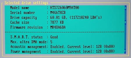 Некоторая информация по этой модели приведена на экране программы Hitachi Feature Tool.