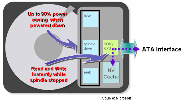 Основные преимущества гибридных накопителей (которые, вообще говоря, уже давно не новость, особенно в свете выхода Vista, но широкого спроса на рынке пока не нашли из-за высокой цены) — это: