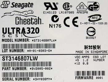 Причем, дело доходит даже до того, что начальные символы Lot Number, Part Number и даже Serial Number совпадают с таковыми для аналогичных (например, по емкости) экземпляров серии Seagate Cheetah 10K.6 (именно «шестой», предыдущей, а не «седьмой», нынешней серии)!