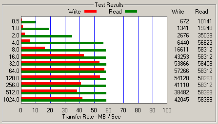 По результатам геометрического усреднения шести предыдущих графиков получаем, что на данных операциях (чтение, запись и копирование крупных и мелких файлов) в среднем диск Maxtor Atlas 10K V лидирует и лишь старички WD Raptor и Seagate Cheetah 10K.6 (с реинкарнацией в виде HP/Compaq BD14685A26) способны хоть как-то составить ему компанию. Тогда как современные десятитысячники от Seagate и Hitachi смотрятся здесь очень скромно. Кстати, расклад дисков в этом «усредненном» тесте напоминает результаты двух других «усредненных» потоковых тестов — PCMark04 и H2Bench.