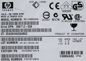 | Hitachi Ultrastar 10K300 HUS103014FL3800 | HP/Compaq BD14685A26 |