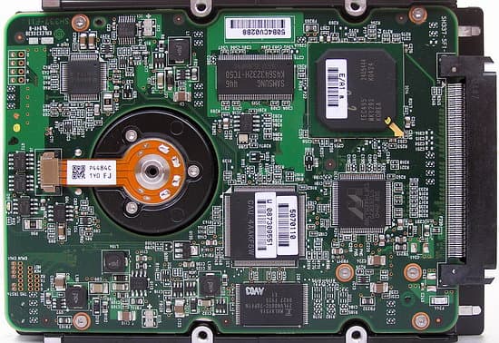 Корпус диска имеет несколько необычную форму, а в углах между платой и корпусом есть место для больших электролитических конденсаторов (наличие которых большая редкость для винчестеров вообще).