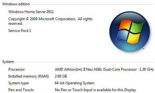 Испытания микросервера HP ProLiant проводились нами под управлением свеженькой операционной системы Microsoft Windows Home Server 2011 (x64), базирующейся на технологиях ОС Windows Server 2008. Система Home Server 2011 наотрез отказалась инсталлироваться на 1 Гбайт системной памяти, которыми микросервер был укомплектован при поставке (1 Гбайт памяти входит в базовый набор), потребовав для себя 2 Гбайт. Поэтому нам пришлось заменить планку памяти на вдвое более емкую и с ней проводить все тесты.
