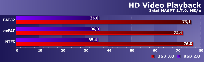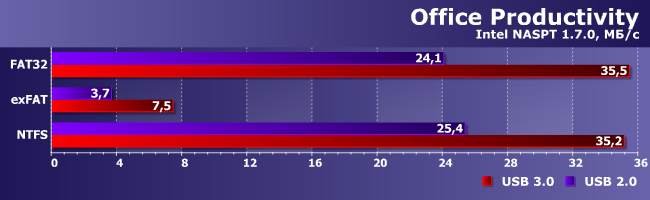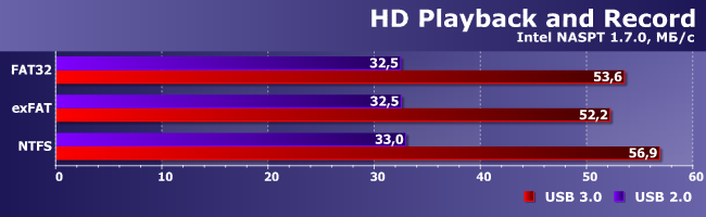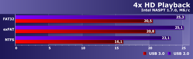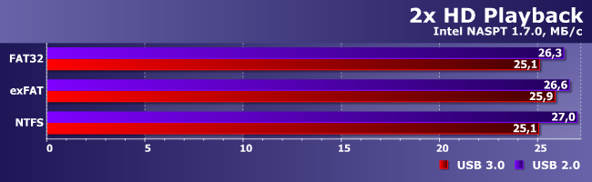 Единственным интересным с практической точки зрения результатом двухпоточного режима является вовсе не сохранения примерного равенства файловых систем, а исчезновение практической пользы от использования USB 3.0.
