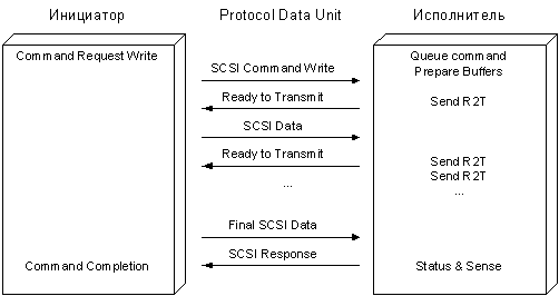 iSCSI протокол осуществляет контроль передачи блоков данных и обеспечивает подтверждение достоверности завершения операции ввода/вывода. Что, в свою очередь, обеспечивается через одно или несколько TCP соединений.