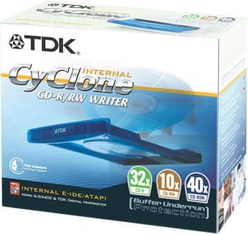 В декабре крупнейшие производители рекордеров и носителей информации особо не торопились с объявлением новых устройств. Затянувшееся затишье прервала компания TDK. Восьмого декабря представительство компании TDK Europe официально сообщило о выпуске новой линейки 32х скоростных CD-RW приводов CyСlone со скоростной формулой 32/10/40, о которой мы уже рассказывали в репортаже, посвященному заводу TDK в Люксембурге.