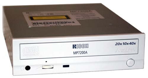 В апреле месяце 2001 года, компания Ricoh все активнее стала заявлять о себе. Одним из таких веских заявлений стала публикация Ricoh Europe полной спецификации своего 20х скоростного CD-RW привода MP7200A-DP. Полная скоростная формула: 20/10/40, интерфейс: ATAPI (Ultra-DMA33), поддержка технологий JustLink и JustSpeed, новый контроллер лазера, в 1,5 более точная фокусировка луча, время доступа: 100 мс, потребление энергии в режиме «standby» — менее 1 Вт. Сyть технологии JustSpeed: при переходе на высокие скорости записи (16x — 20x), электроника драйва тестирует тип диска по ATIP информации (компания-пpоизводитель, номеp модели диска, и дp.), и, в зависимости от полученных данных, настраивает скорость записи на оптимум в диапазоне 12x — 20x. Привод оборудован выходом S/PDIF.