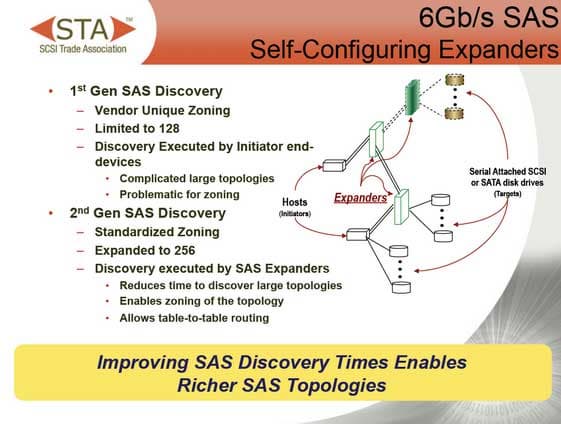 С другой стороны, у SAS-2 улучшена поддержка SATA-накопителей высшей емкости в системах хранения данных (при помощи SATA Tunneling Protocol (STP)/SATA Bridging и Serial SCSI Protocol (SSP)/SATA Bridging, см. www.serialstoragewire.net/Articles/2008_03/opinion28.html), что усиливает универсальность нового интерфейса.