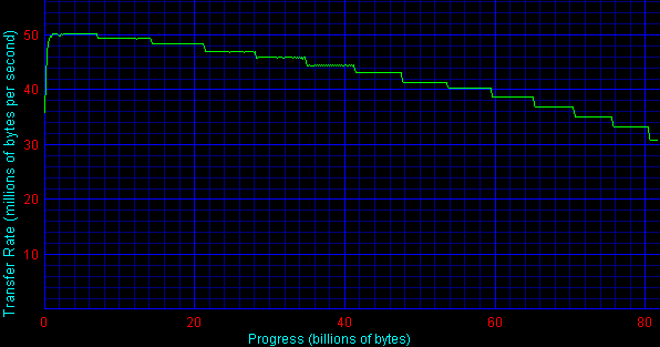 Неожиданный проигрыш модели 6Y080P0 объясняется странным поведением кривой скорости линейного чтения на начальном этапе. Причем ситуация повторялась неоднократно. Дело в буфере? Может быть.