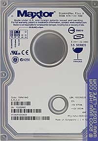 Диск 6Y080P0 емкостью 80GB входит в линейку DiamondMax Plus9, о которой я подробно писал в обзоре моделей 2002 года. Вкратце напомню, что это линейка «полноразмерных» дисков с плотностью записи 80GB на пластину (по данным производителя). Я, честно, говоря, на это и купился. Но бдительные читатели моментально заметили неточность. По их экспериментальным данным емкость пластин дисков этой линейки может быть и меньше. Для дисков с прошивкой YAR41VW0 плотность записи составляет 60 GB на пластину (80 GB — полторы обрезанных пластины), для дисков с firmware YAR41BW0 плотность записи вроде бы зависит от объема диска — 80 GB на пластину для моделей емкостью 80 и 160 GB и 60 для 60 и 120-гигабайтных моделей. Диски с новой прошивкой я еще не тестировал, но в ближайшее время исправлю эту оплошность. Емкость дисков — 60, 80, 120 и 160 гигабайт (сейчас появился и 200-гигабайтный диск). Кодовое обозначение — 6Yxxxz0, где xxx- емкость, z — тип диска (L — «обычный» с двухмегабайтным буфером, P — с восьмимегабайтным буфером, M — с интерфейсом Serial ATA).