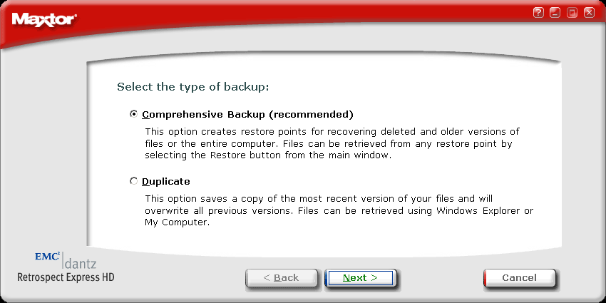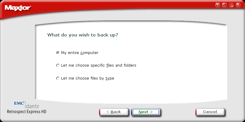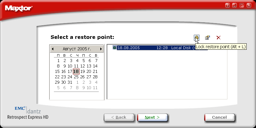 Процедура восстановления содержимого всего компьютера выглядит довольно вычурно и несовременно — в случае краха системы, вам придется самостоятельно установить ОС со всеми сервис-паками, проследить, чтобы используемый для этого раздел не оказался меньше, чем был при архивировании, затем установить ПО с CD Maxtor OneTouch II SBE и уже тогда выполнить восстановление из выбранной контрольной точки. (Попутно заметим, что некоторые современные программы позволяют производить резервирование разделов прямо на CD или DVD, создавая при этом загрузочный диск, и в случае краха системы восстановление произвести напрямую с этого загрузочного диска — это куда удобнее, приятнее и дешевле, чем дорогой подход с внешним жестким диском. Впрочем, у последних тоже есть определенные плюсы.)