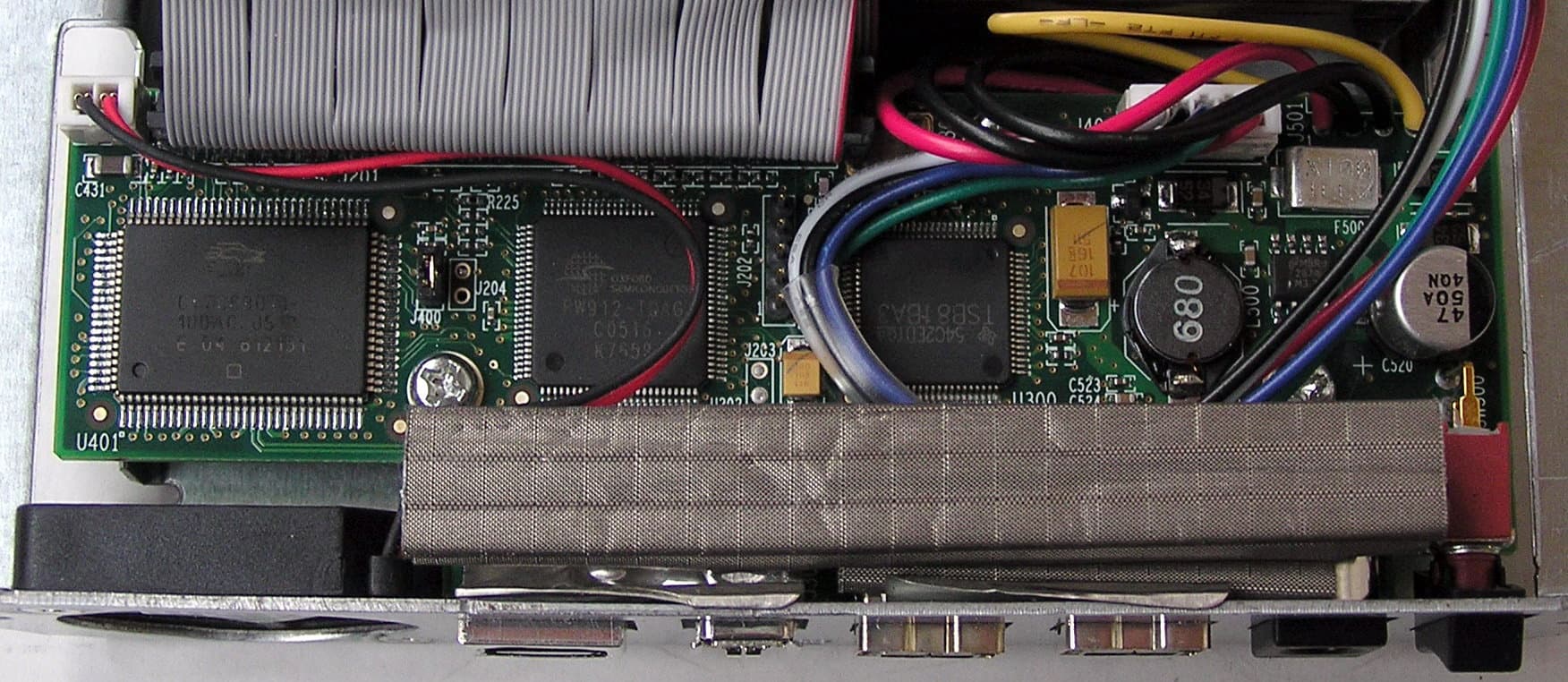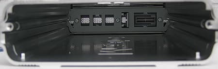 и немалого количества разъемов сзади, где помимо уже упоминавшихся выше USB и питания присутствуют — один традиционный FireWire (1394а) и целых два новомодных высокоскоростных FireWire (1394b).