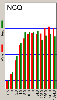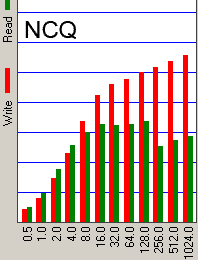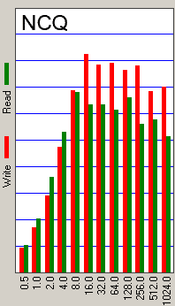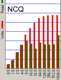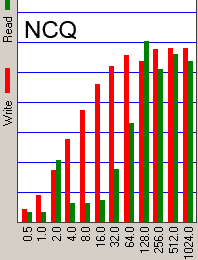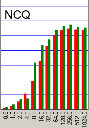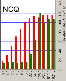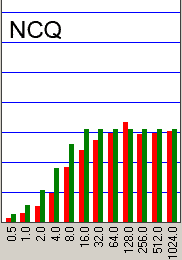 Здесь диски Maxtor одни из лучших (особенно, DM11), Barracuda 7200.9 демонстрирует чуть меньшую скорость (хотя и бОльшую, чем 7200.8), а при отключении поддержки NCQ на стороне хоста измеряемая данными утилитами скорость интерфейса для большинства фигурантов немного возрастает (возможно, это связано с присутствием неких задержек на обработки запросов при наличии NCQ).