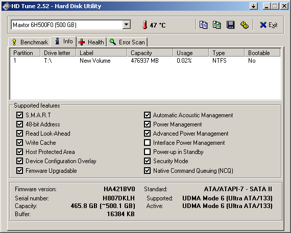 Здесь мы можем отметить совершенно одинаковый объем у обоих накопителей, а также то, что Maxtor поддерживает Advanced Power Management, а Seagate — нет.