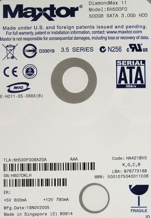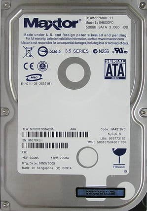 Maxtor DM11 6H500F0 | Seagate ST3500641AS | Maxtor DM10 6B300S0 |