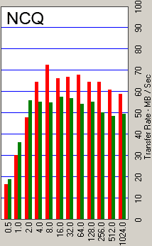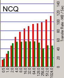 Наконец, самые крупные 32-мегабайтные файлы (то есть практически потоковая работа) обрабатываются дисками фактически со скоростью физических носителей (и у Maxtor 6H500F0 здесь несомненное преимущество), однако использование NCQ в этом случае чуточку замедляет процессы и у Maxtor, и у Seagate.