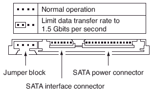 Накопители Seagate можно переключать в режим работы интерфейса Serial ATA 1,5 Гбит/с (для лучшей совместимости со старыми контроллерами Serial ATA 1.0). При этом возможность работы NCQ сохраняется.