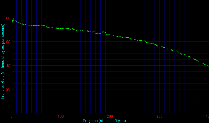 Сначала — графики скорости линейного чтения для дисков (кликните по ним, чтобы посмотреть полные рисунки).