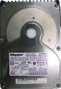 С первых строк технической документации Maxtor заявляет, что Atlas 15K — «The World's Fastest Hard Disk Drive» (именно так, все слова с большой буквы). Далее следует расшифровка столь агрессивного заявления, — оказывается, что имеется в виду среднее время доступа, равное 3,2 мс. Следует заметить, что старшая модель, как и у других производителей, имеет чуть большее время доступа, равное 3,4 мс. По сравнению с десятитысячниками указывается на 45%-й рост количества операций ввода-вывода в секунду. В диске также используется технология MaxAdapt и Shock Protection System. В линейке Atlas 15K присутствуют диски размером 18.4, 36.7 и 73.4GB, интерфейс подключения: 68-pin Wide или 80-pin SCA-2. На тестирование попал старший диск этой линейки с интерфесом 68-pin Wide.
