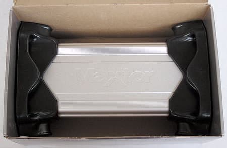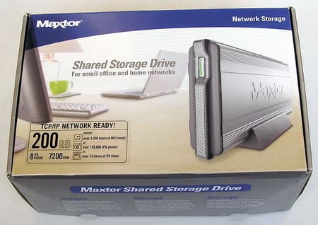 Наконец, дошло дело и до собственно производителей винчестеров, уверенно осваивающих смежные для себя рынки внешних накопителей: компания Maxtor, уже набравшая опыт в области внешних накопителей, представила две модели сетевых (в терминологии Maxtor — Shared Storage Drive) винчестеров — двухсотгигабайтную H01P200 и трёхсотгигабайтную H01R300. К нам на тестирование попала младшая модель — H01P200.