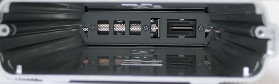 Корпус накопителя имеет очень внушительные габариты и вес. Он намного длиннее (27 см), чем корпуса USB-накопителей Maxtor OneTouch II, хотя выполнен из того же толстого дюралевого профиля, надежно защищающего внутренности и хорошо отводящего тепло.