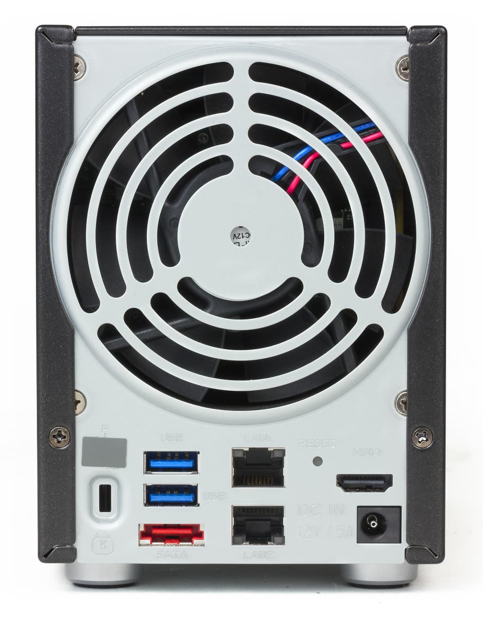 Комфортный температурный режим обеспечивает вентилятор Delta AFB0912HH-AU40. Система умеет контролировать его скорость, а также регулировать ее в зависимости от текущих условий. Отметим, что в работе вентилятор очень тихий, во время тестирования накопитель практически не было слышно даже ночью на расстоянии нескольких метров (скорость вращения вентилятора составляла около 850 об/мин).