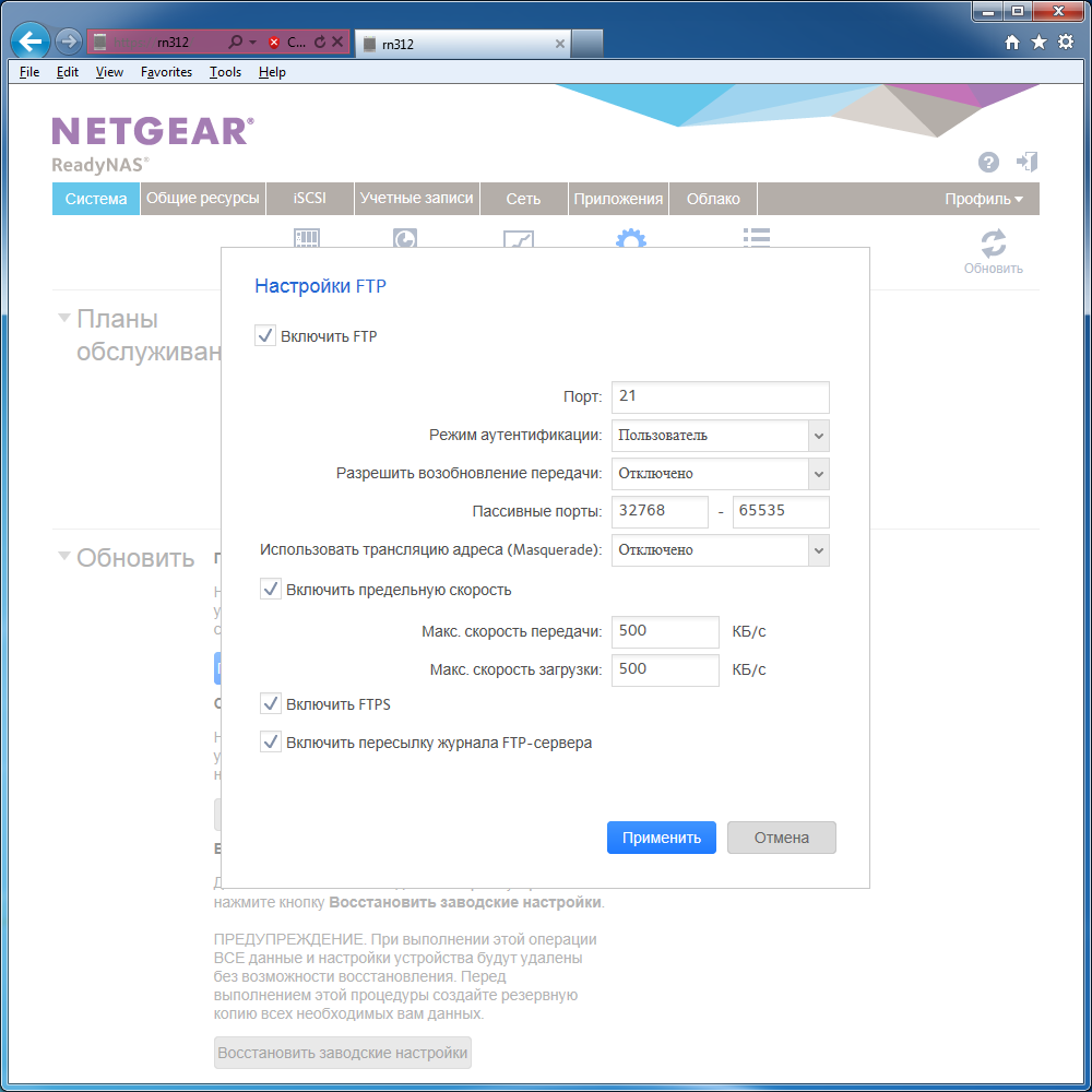 Упомянем также работу с облачными системами хранения данных в модуле резервного копирования. Первая из возможностей — синхронизация выбранной папки с DropBox. Вторая — резервное копирование в фирменный сервис ReadyNAS Vault. Последний представлен только платной версией (есть возможность попробовать его работу в течение месяца).
