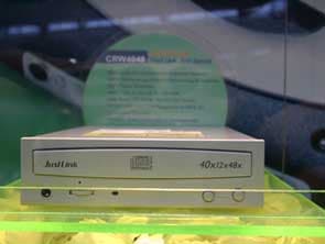 Компания Mitsumi на CeBIT демонстрировала, помимо своего флагмана — весьма неплохо продающийся сегодня CR-480ATE (32/12/40, 2 Мб буфера, поддержка ExacLink и Mt. Rainier), новейший CD-RW дисковод CR-480CTE, который обладает возможностью сорокаскоростной записи и двенадцатикратной перезаписи. CR-480CTE несет «на борту» 16 Мб буферной памяти, а скорость произвольного доступа к данным составляет 84 мс. Новый дисковод Mitsumi также поддерживает технологию защиты от опустошения буфера Exaclink и формат Mt. Rainier.