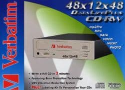Компания Verbatim, наряду с выпуском 32/10/48 и 40/10/48 приводов, уже представила новый 48/12/48 привод. Все модели оборудованы 2 Мб буфером, 32/10/48 и 40/10/48 модели имеют время доступа к данным в режиме чтения 100 мс и поступят на европейский рынок по цене $149 (170 евро) и $179 (204 евро) соответственно. 48/12/48 привод пока что только представлен, известно, что время доступа к данным в режиме чтения у него составит 120 мс. Ценовой информации о приводе пока нет.
