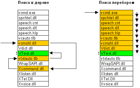 Каталог на NTFS представляет собой специфический файл, хранящий ссылки на другие файлы и каталоги, создавая иерархическое строение данных на диске. Файл каталога поделен на блоки, каждый из которых содержит имя файла, базовые атрибуты и ссылку на элемент MFT, который уже предоставляет полную информацию об элементе каталога. Внутренняя структура каталога представляет собой бинарное дерево. Вот что это означает: для поиска файла с данным именем в линейном каталоге, таком, например, как у FAT-а, операционной системе приходится просматривать все элементы каталога, пока она не найдет нужный. Бинарное же дерево располагает имена файлов таким образом, чтобы поиск файла осуществлялся более быстрым способом — с помощью получения двухзначных ответов на вопросы о положении файла. Вопрос, на который бинарное дерево способно дать ответ, таков: в какой группе, относительно данного элемента, находится искомое имя — выше или ниже? Мы начинаем с такого вопроса к среднему элементу, и каждый ответ сужает зону поиска в среднем в два раза. Файлы, скажем, просто отсортированы по алфавиту, и ответ на вопрос осуществляется очевидным способом — сравнением начальных букв. Область поиска, суженная в два раза, начинает исследоваться аналогичным образом, начиная опять же со среднего элемента.