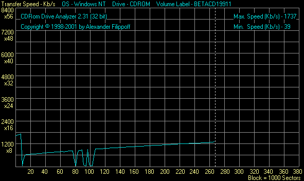 Суммируя полученные данные, могу сказать, что привод довольно разборчив при работе с CD дисками, если диск ему не понравится, то скорость чтения будет очень низкой.