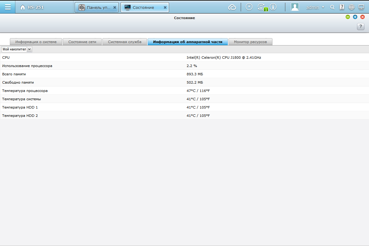 Использование платформы Intel Celeron позволяет устройству показывать отличные скоростные показатели, а также обеспечить запас производительности для реализации дополнительных сервисов. Кроме того, нужно отметить наличие портов HDMI, USB 3.0 и второго сетевого порта. Так что позиционирование устройства для использования в рабочих группах и в верхнем сегменте SOHO и домашних накопителей вполне оправдано. Единственное замечание по аппаратной конфигурации может быть только к объему оперативной памяти: даже если не нашлось места для установки слотов SO-DIMM, более уместно здесь смотрелся бы выбор из моделей с 2 и 4 ГБ оперативной памяти, чем предложение вариантов с 1 и 2 ГБ. Тем более, что цена самой памяти невелика, а платформа поддерживает до 8 ГБ. С другой стороны, практика показывает, что для большинства популярных сценариев — и одного гигабайта обычно более чем достаточно.