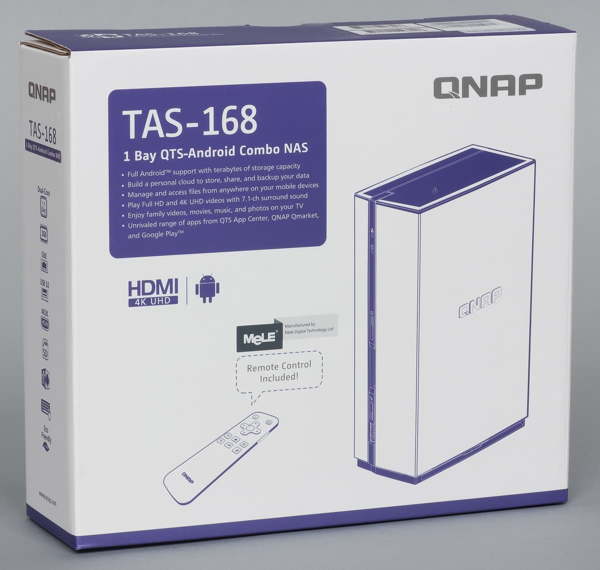 Представленные в начале декабря 2015 г. устройства QNAP TAS-168 и TAS-268 совмещают в себе как знакомый интерфейс и возможности QTS (встраиваемого фирменного программного обеспечения QNAP), так и функции компьютеров с Android. Теперь еще сложнее однозначно коротко охарактеризовать эти устройства, сочетающие сетевой накопитель, медиаплеер и микрокомпьютер. Посмотрим на примере младшего устройства, рассчитанного на установку одного жесткого диска, насколько удачным будет этот симбиоз и кому он может быть интересен.