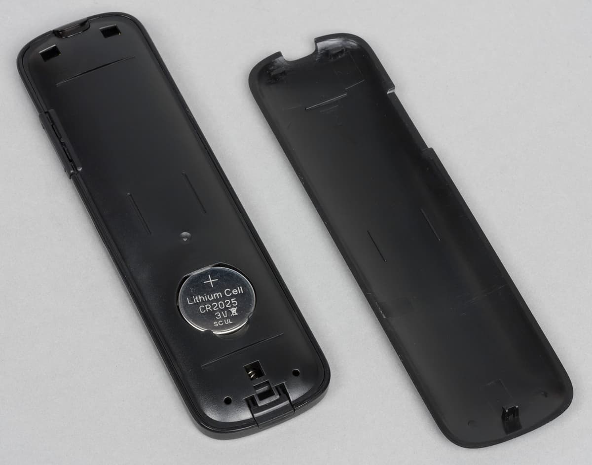 Всего пульт имеет восемь кнопок, блок навигации и сдвоенную клавишу регулировки громкости. Предусмотрено переключение устройства в режим управления курсором мышки. Питание осуществляется от батареи формата CR2032. Дальность работы пульта средняя, с отраженными сигналами он не работает.