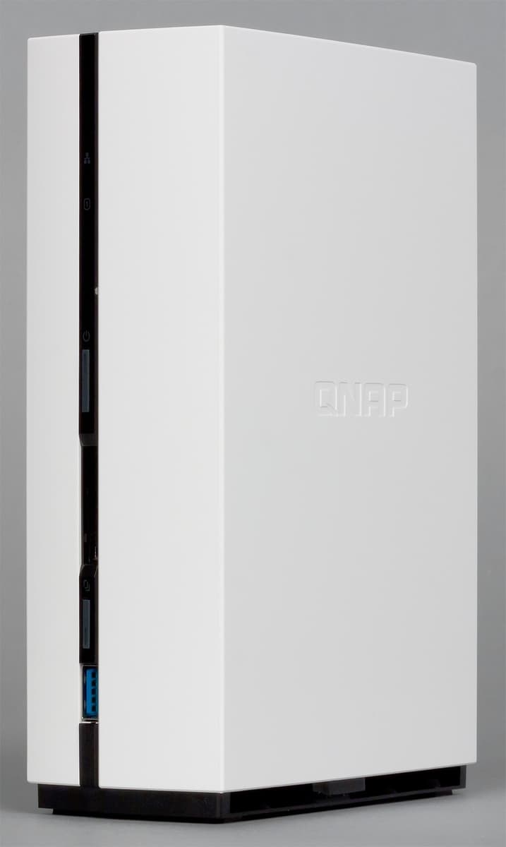 Далее подключаем питание и сетевой кабель и включаем питание устройства. Следующий шаг — установка программного обеспечения. Для этого нужно найти устройство в сети программой QFinder (или по логам роутера) и открыть его веб-интерфейс. Указываем имя, пароль администратора, время, IP-адрес (можно оставить DHCP), запускаем форматирование дискового тома, и через несколько минут накопитель готов к работе.
